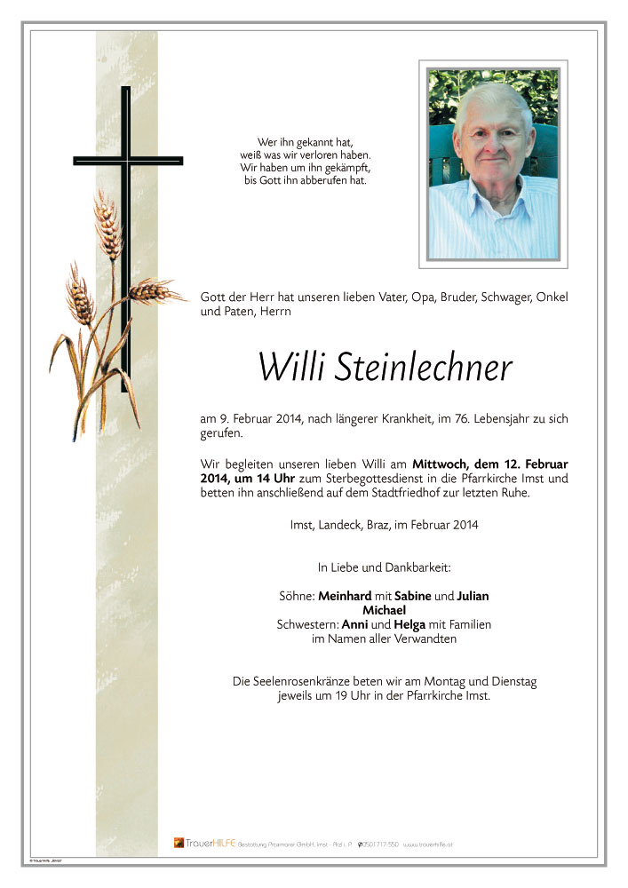 Meinhard wir entbieten Dir und Deiner Familie unser aufrichtiges Beileid.11.02.2014 21:24 - Agerer Christine,Valentin Plangger u. Margit Köhle