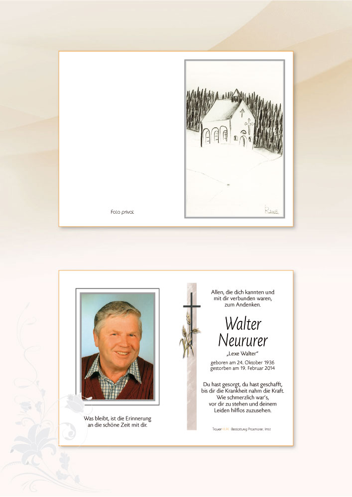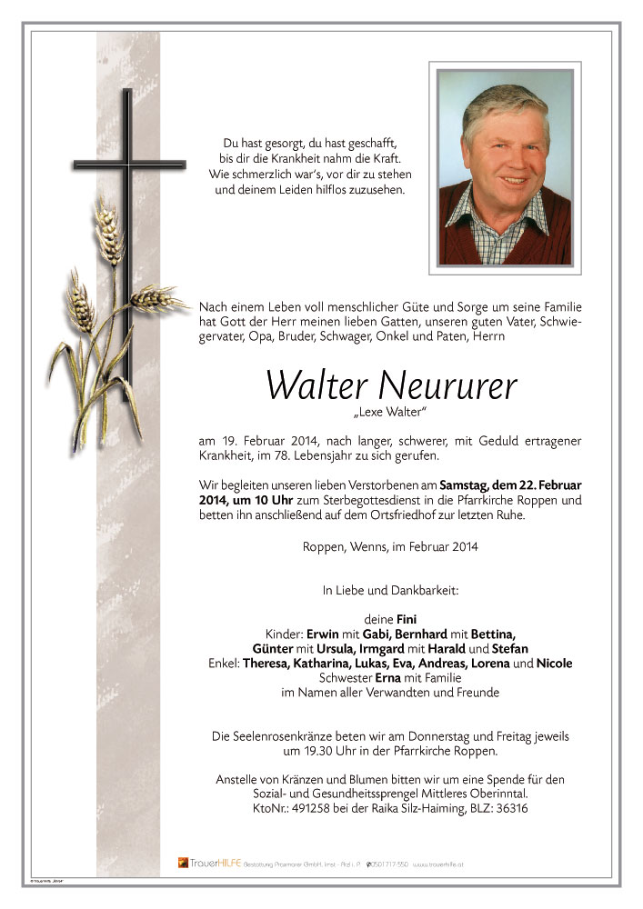 Unsere Worte werden wohl kaum im Stande sein, eure Trauer über den Verlust von Walter, zu lindern.