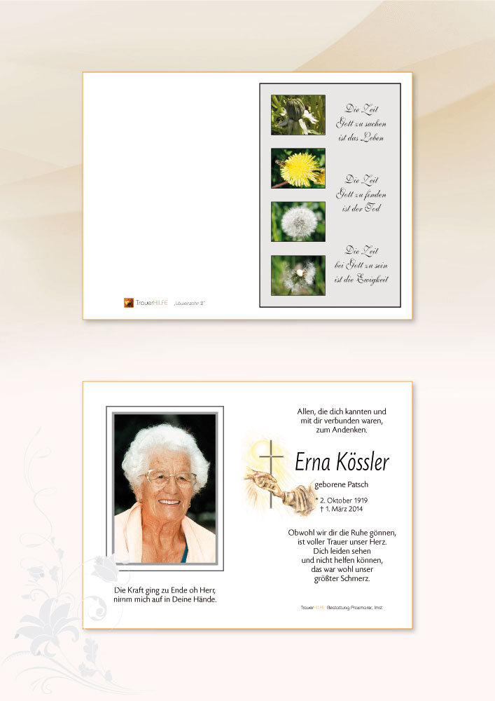 Zum Heimgang deiner lb. Erna, eurer Mama und Oma möchten wir euch unser tiefes u. aufrichtiges Mitgefühl ausdrücken.