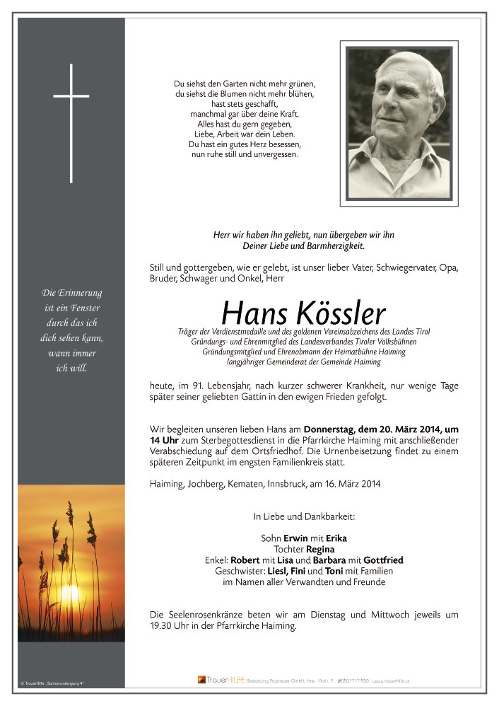 Unser aufrichtiges Beileid17.03.2014 12:24 - Lisi und Karl Allneider