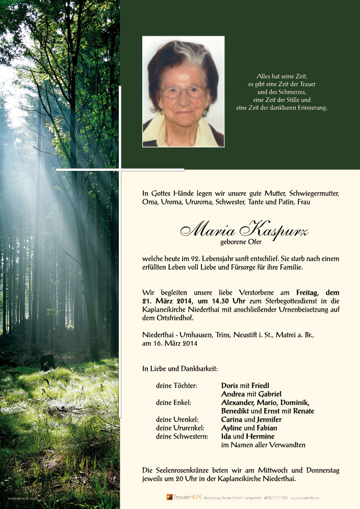 aufrichtige Anteilnahme am Heimgang eurer lieben Maria entbietet Firma Steintec, Steinmetzbetrieb Umhausen