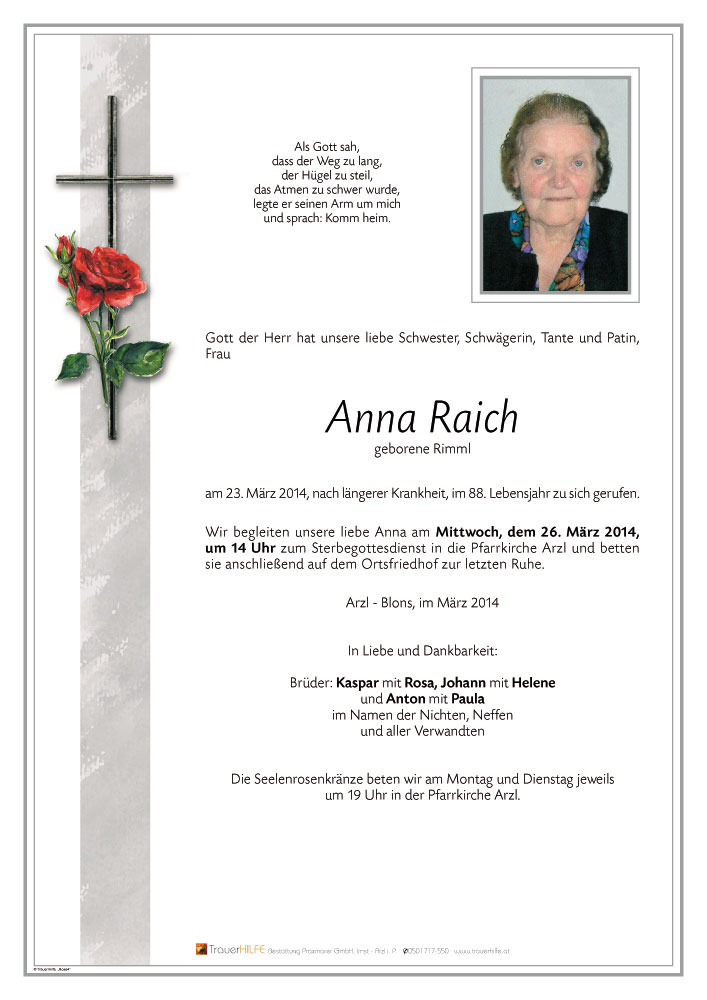 Friedhof Arzl im Pitztal, † 23.03.2014 (87 Jahre)