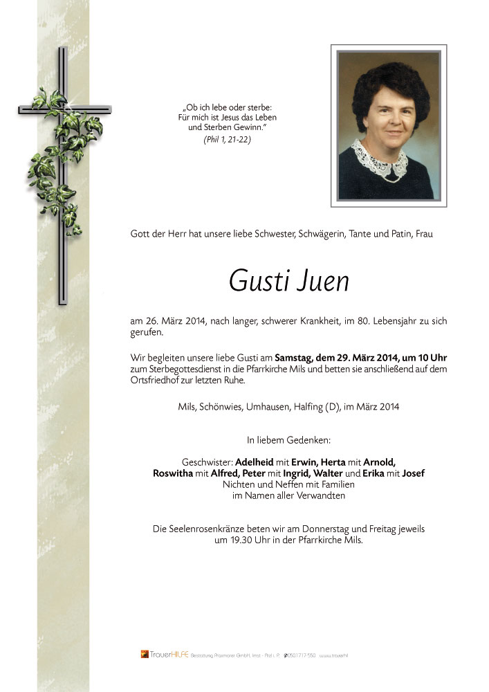 Liebe Gusti, danke daß ich dich ein kleines Stück deines Weges begleiten durfte!