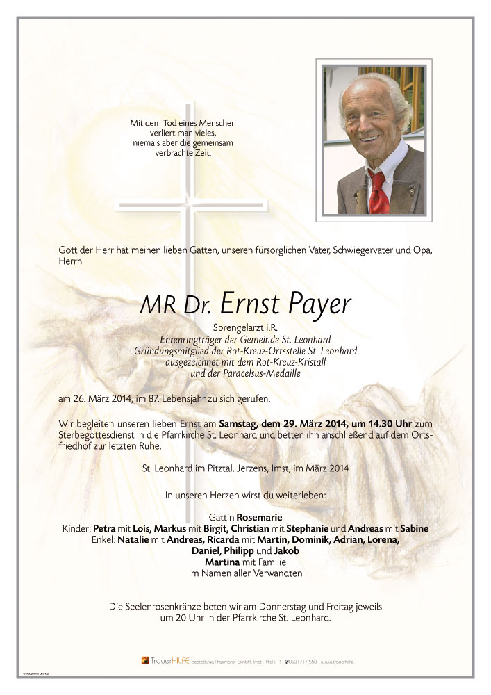 Was Du im Leben hast getan für all Deine Patinten sei Dir ein großes Vergelts Gott gesagt, mögest Du für alles belohnt werden. Viel Kraft in die dieser schweren Zeit ein aufrichtiges Beileid der ganzen Trauerfamilie. Monika und Ernst27.03.2014 10:56 - Monika und Ernst
