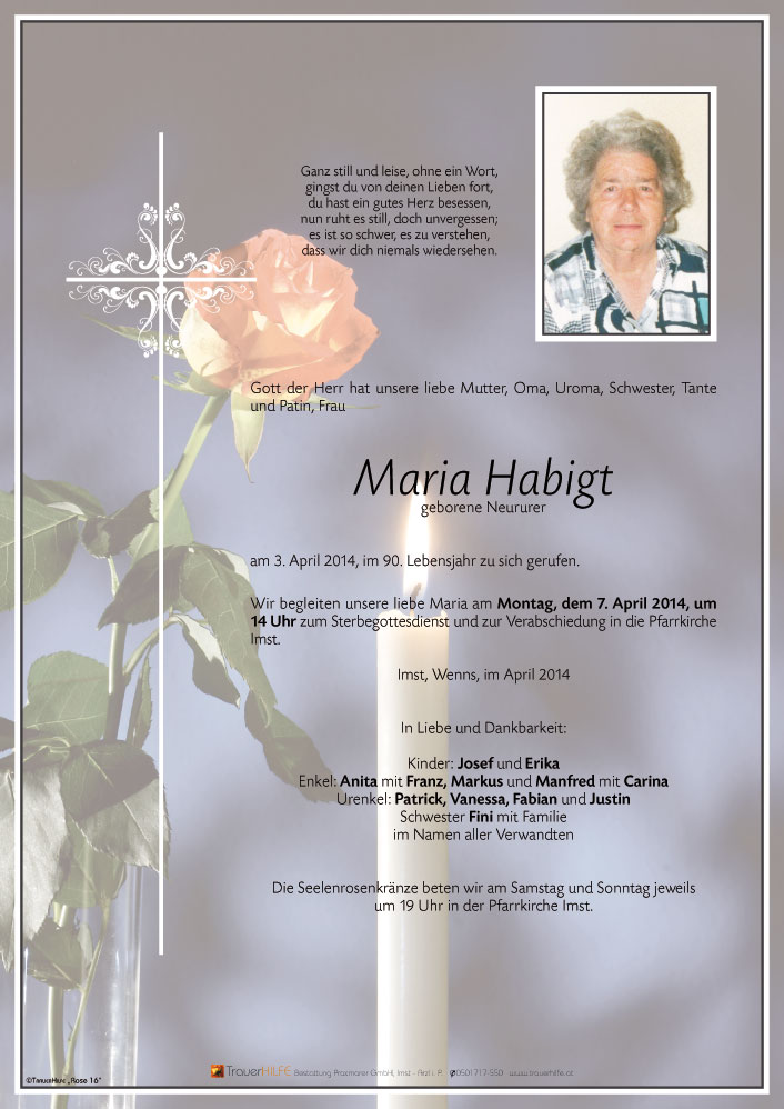 Ich möchte euch zum Heimgang von Maria mein herzliches Beileid ausdrücken und wünsche euch viel Kraft für die schwere Zeit.04.04.2014 22:33 - Manuel Santer