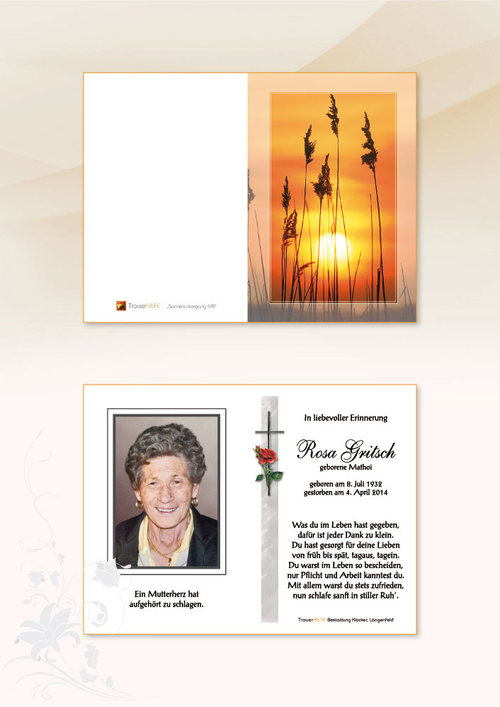Mit dem Tod eurer lieben Mama und Oma verliert man vieles, jedoch niemals die mit Ihr verbrachte Zeit.