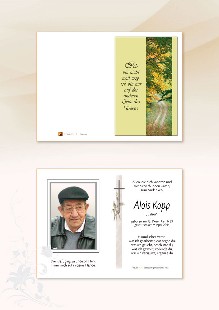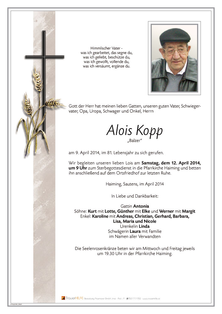 Neue Kerze für Alois Kopp entzünden.