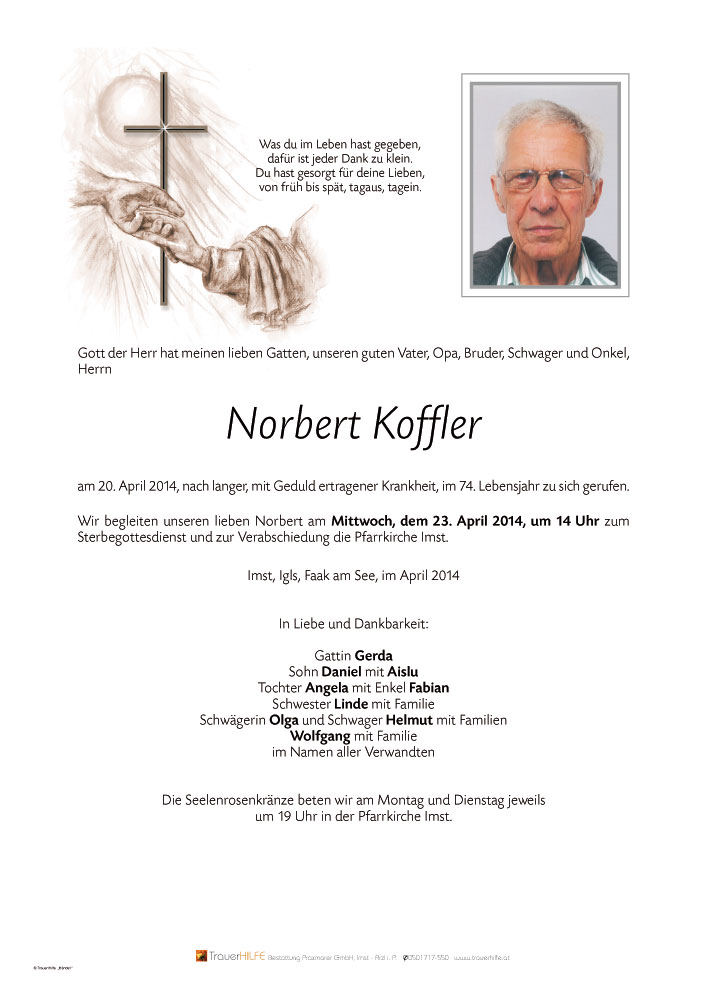 Liebe Angehörige von Norbert. Schön, dass ich Euch noch in den letzten Stunden vor seinem Heimgang ein wenig begleiten konnte. Ich wünsche Euch viel Kraft und Segen. Möge, besonders Fabian, ihn als lieben Opa in seinem Herzen bewahren. Andreas