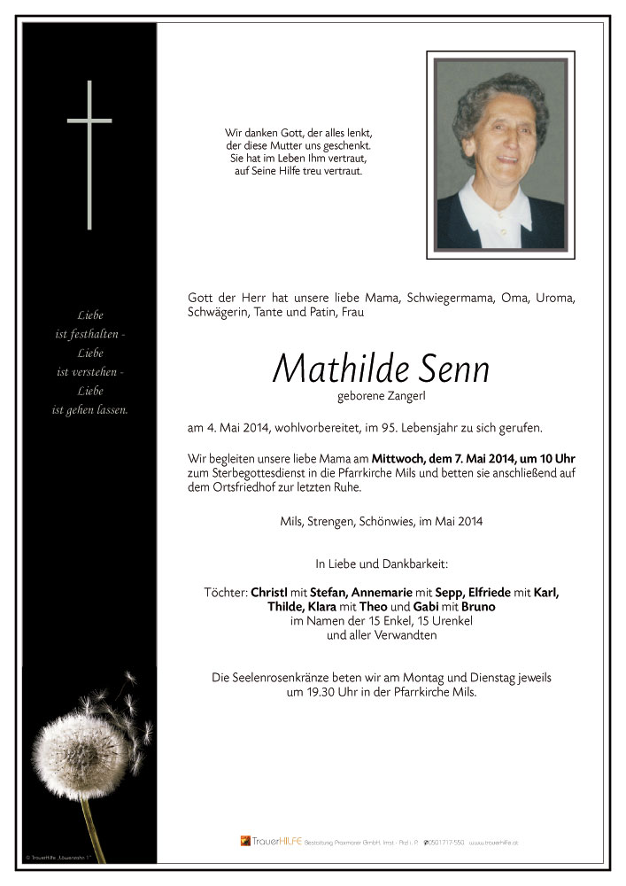 Herzliche Anteilnahme am Heimgang eurer lieben Mama05.05.2014 10:04 - Margit und Hans