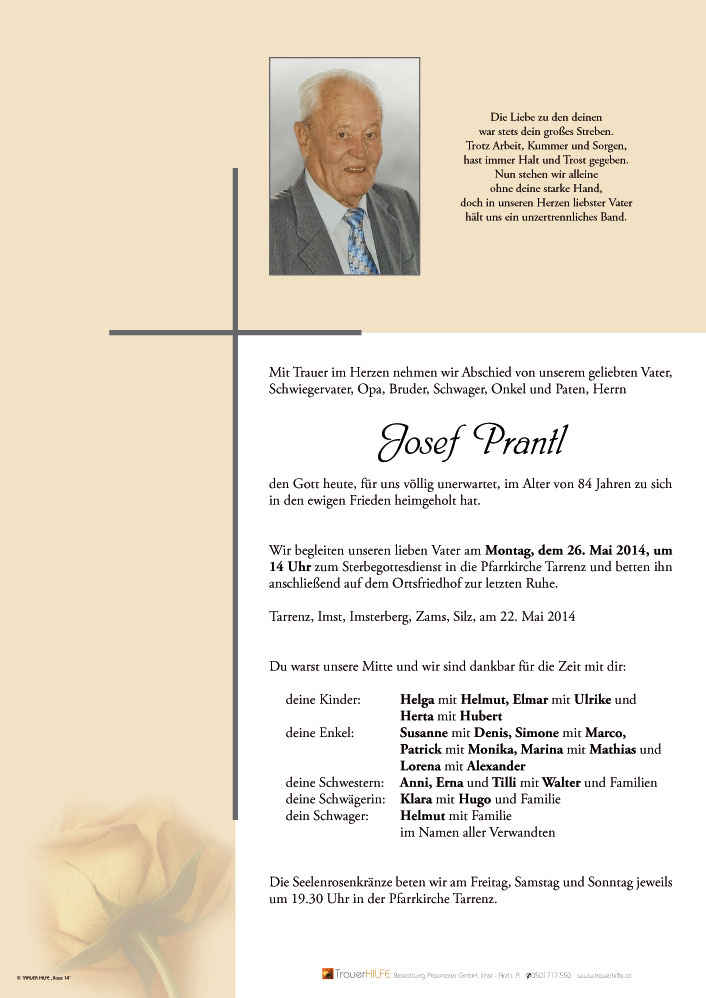 Es ist schwer in diesen Tagen Worte zu finden. Josef hat sich nun verabschiedet und wird vor allem euch, aber auch vielen anderen fehlen.