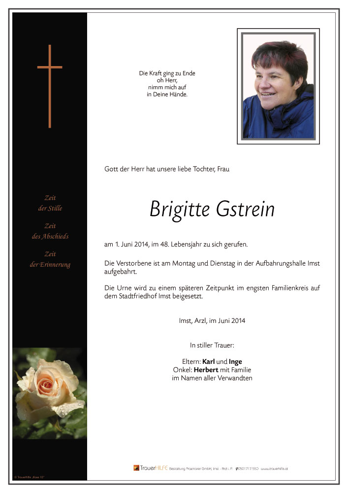 Zum Heimgang Eurer Tochter und Nichte wünschen ich Euch viel Kraft und Segen. Diakon Andreas Sturm von der Pfarre Imst.02.06.2014 10:03 - Diakon Andreas Sturm