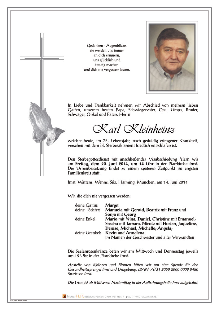 Unser aufrichtiges Beileid an alle Trauerfamilien.16.06.2014 22:04 - Bair Barbara, Bernhard & Irene mit Fam.