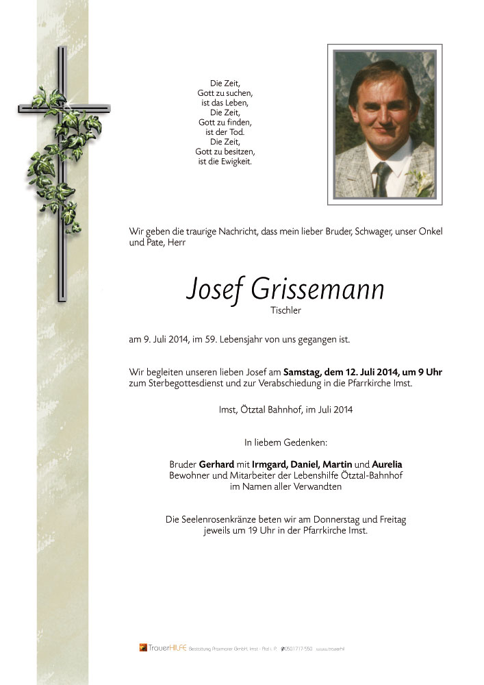 Neue Kerze für Josef Grissemann entzünden.