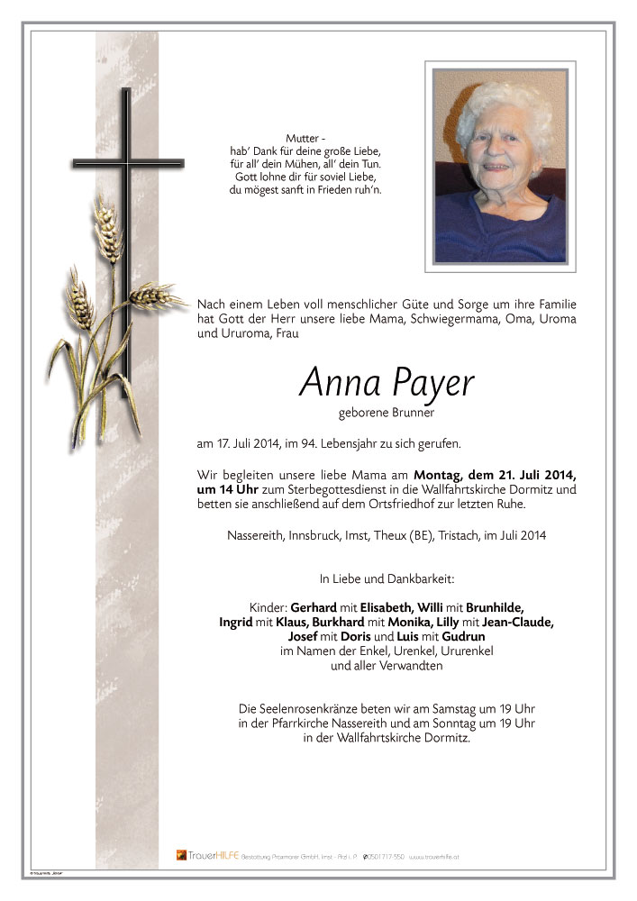 Friedhof Dormitz - Nassereith, † 17.07.2014 (93 Jahre)
