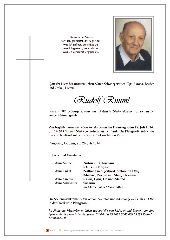 Bestattung wurde durchgeführt von: Daniel Klocker Bestattung Praxmarer GmbH Thomas Walch Str. 4 6460 - Imst Tel.: 05412 64250 zum Bestatter