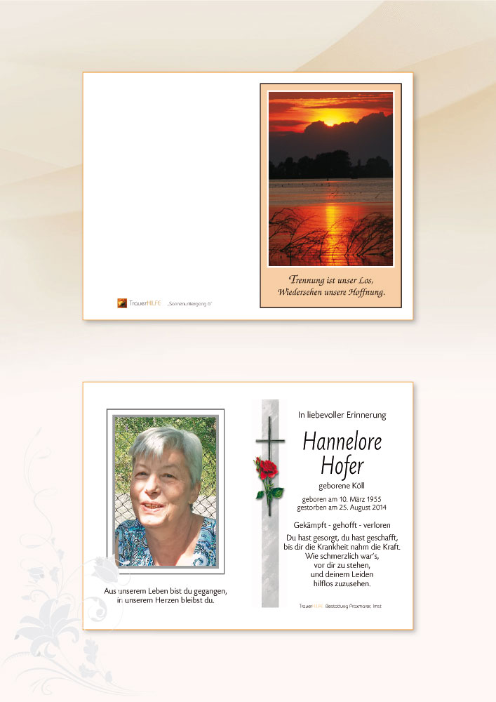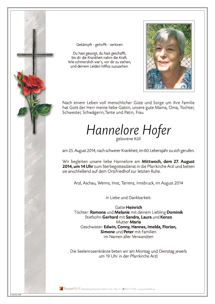 Neue Kerze für Hannelore Hofer entzünden.