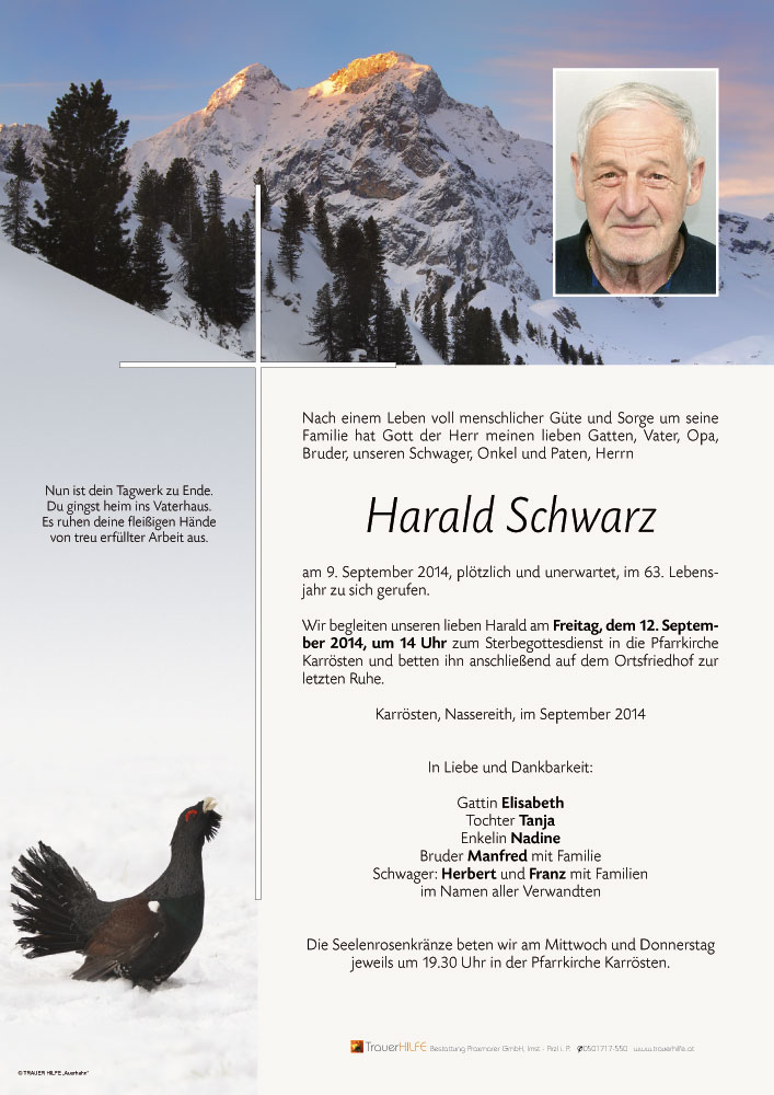 Wir werden Harald immer in lieber Erinnerung behalten und wünschen euch in dieser schweren Zeit viel Kraft.12.09.2014 11:49 - Daniel, Barbara und Lea