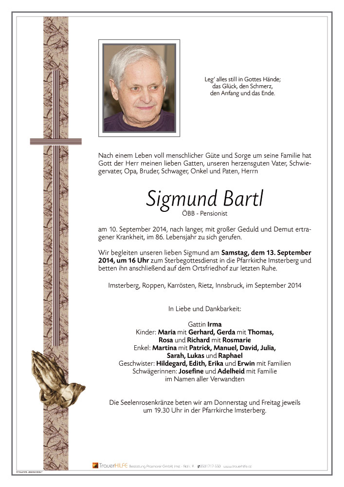 Unser aufrichtiges Beileid!12.09.2014 09:24 - Waltraud Mungenast u. Anna Vigl