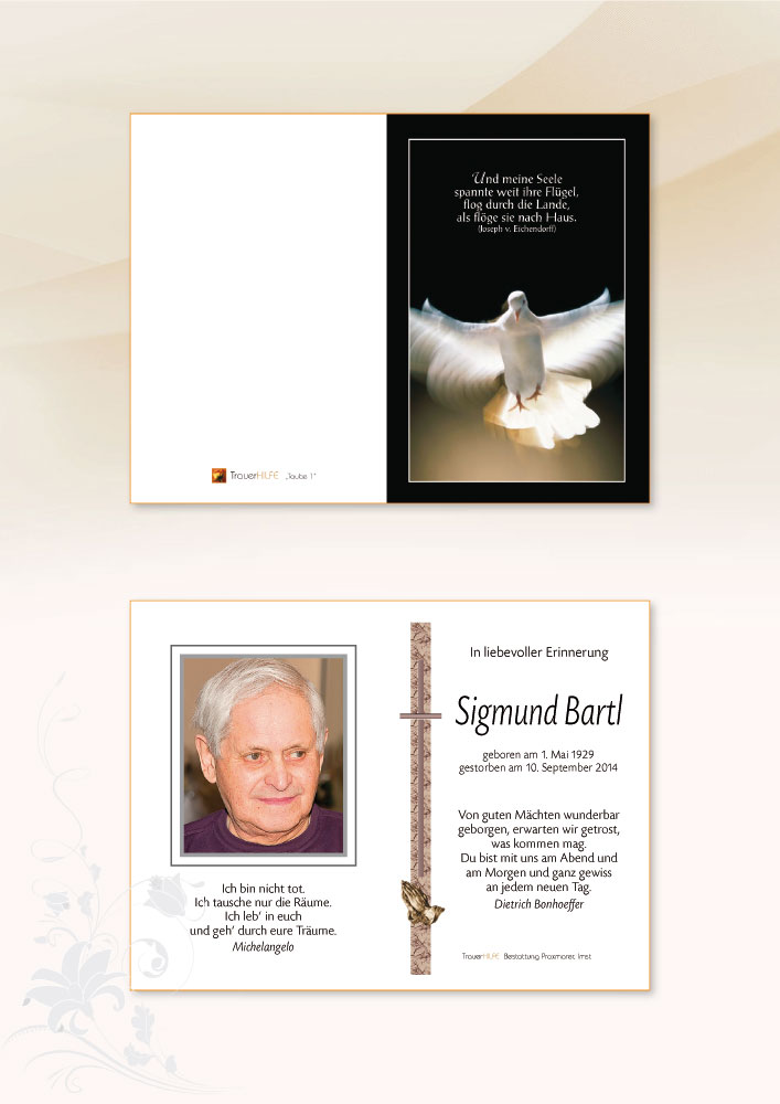 Unser Leben ist in Gottes Hand, wenn es sein Wille ist, dann trauert nicht um mich, sondern gedenket meiner in Liebe.