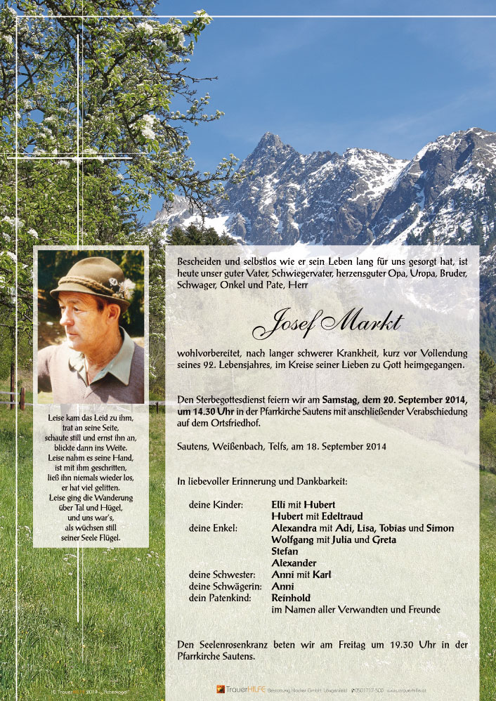 Weidmannsruh lieber Sepp, der liebe Gott wird Deiner Seele gnädig sein und ER tröste die Hinterbliebenen. Amen.