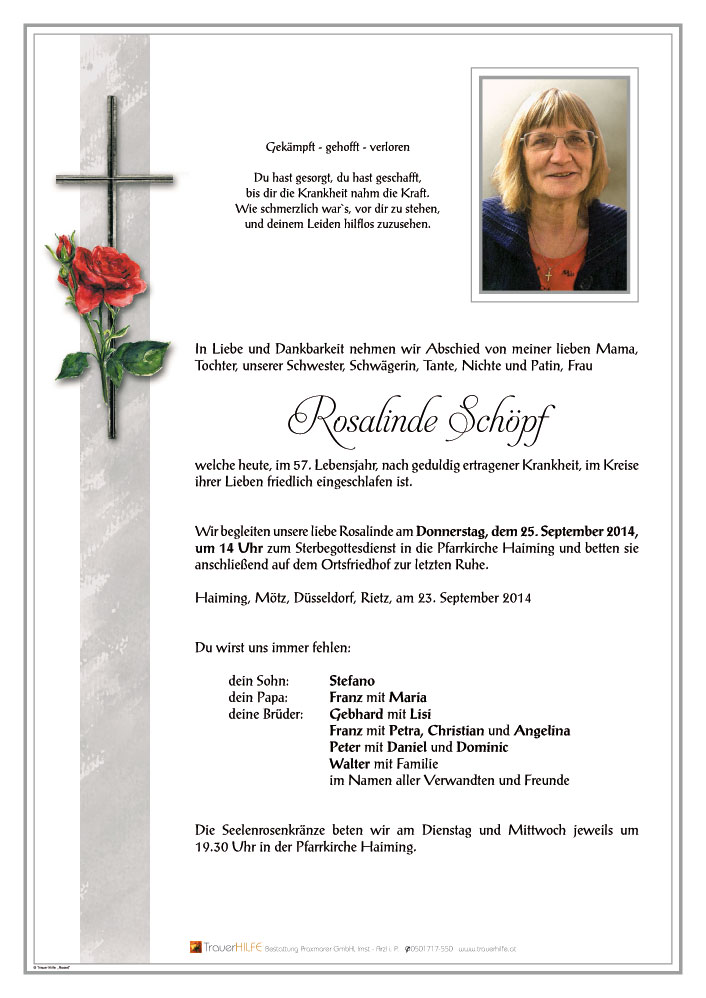 Neue Kerze für Rosalinde Schöpf entzünden.