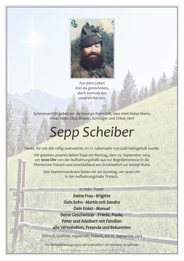 Aufrichties Beileid der Trauerfamilie25.09.2014 19:58 - Harald Pöll