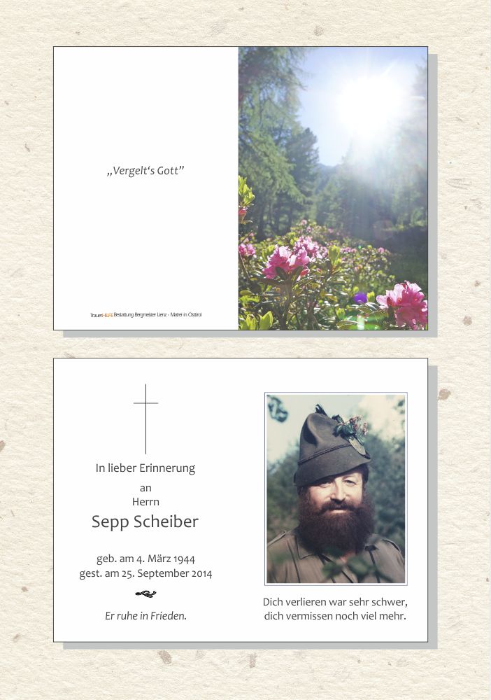 Tief betroffen entbiete ich Dir mein aufrichtiges Beileid. Habe an den Sepp nur gute Erinnerungen an feine Zeiten mit ihm.Ich wünsche Dir persönlich viel Kraft in dieser schweren Zeit.