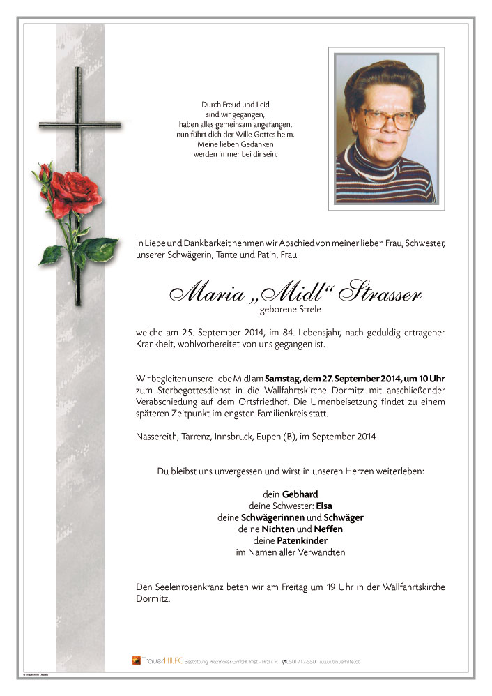 wir wünschen dir viel Kraft in dieser schweren Zeit. Aufrichtige Anteilnahme,
