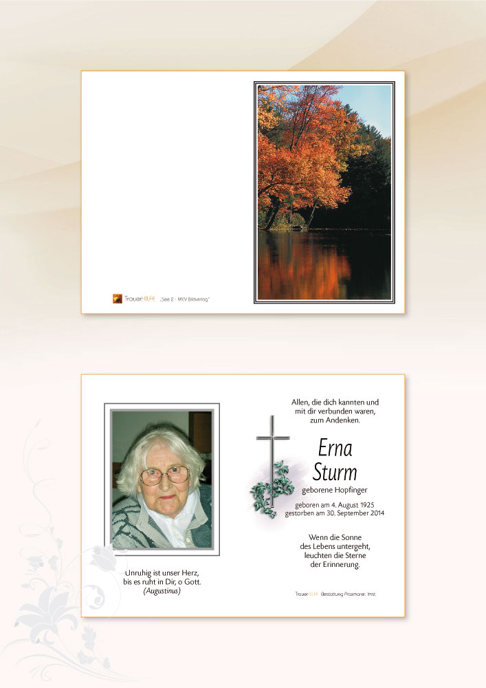 Zum Heimgang von Erna möchte ich euch mein herzliches Beileid ausdrücken und wünsche euch allen viel Kraft in dieser schweren Zeit.04.10.2014 11:40 - Manuel Santer