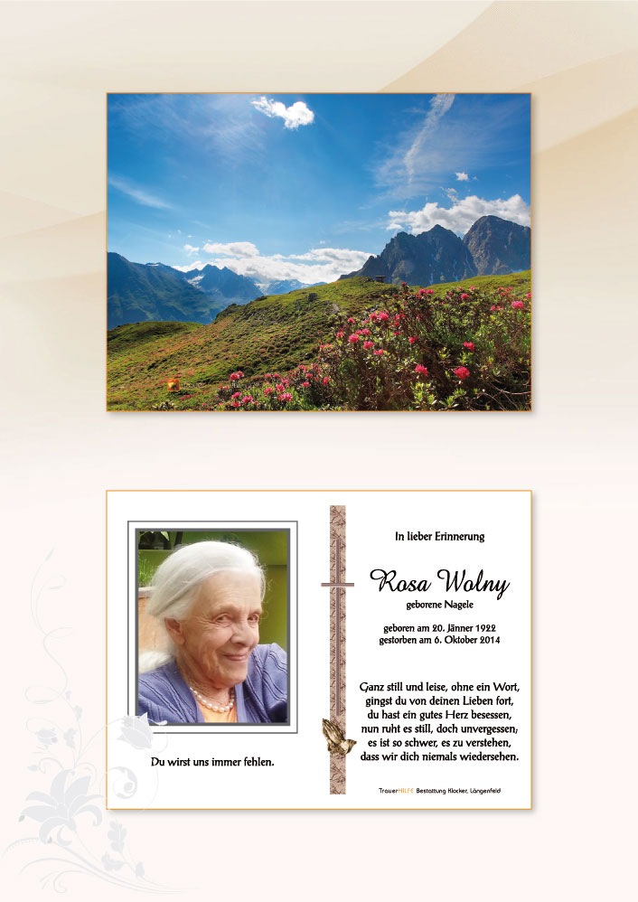 Und so werden wir vieles von eurer Rosa in Erinnerung behalten. Ihre Liebe zum Detail, ihre große Freude an kleinen Dingen, ihre Selbstbestimmung und Vehemenz bis zum Tod und ihre wenigen, aber oft so zu Herzen gehenden Worte, wie ihr "Amen".