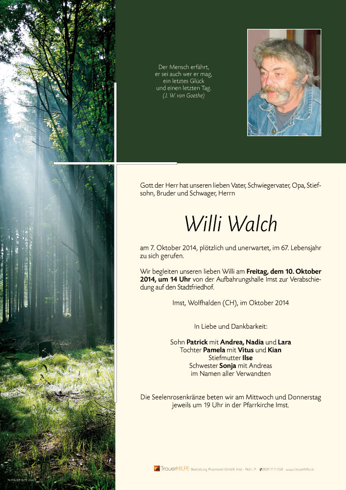 Neue Kerze für Willi Walch entzünden.