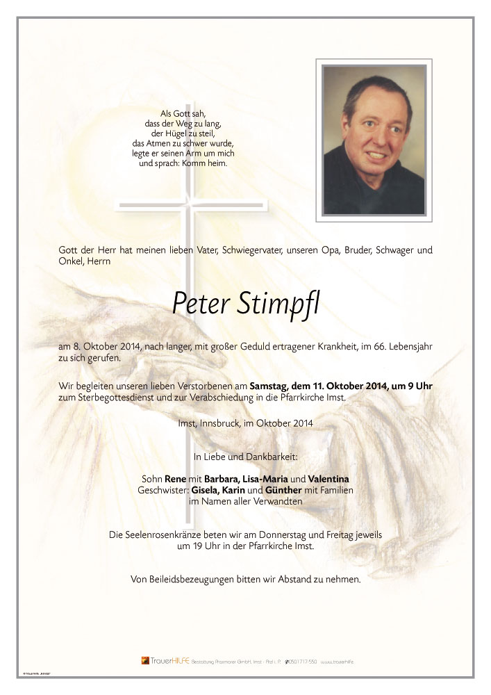 Meine tiefste Anteilnahme zum Heimgang von Peter entbietet