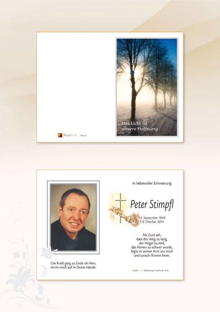 Licht und Frieden nun Ruhe sanft Vorbildlich und ohne klagen hast du ertragen was dir auferlegt war .