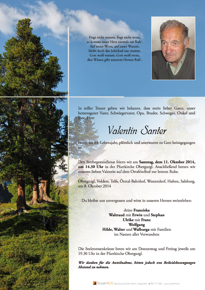 Neue Kerze für Valentin Santer entzünden.