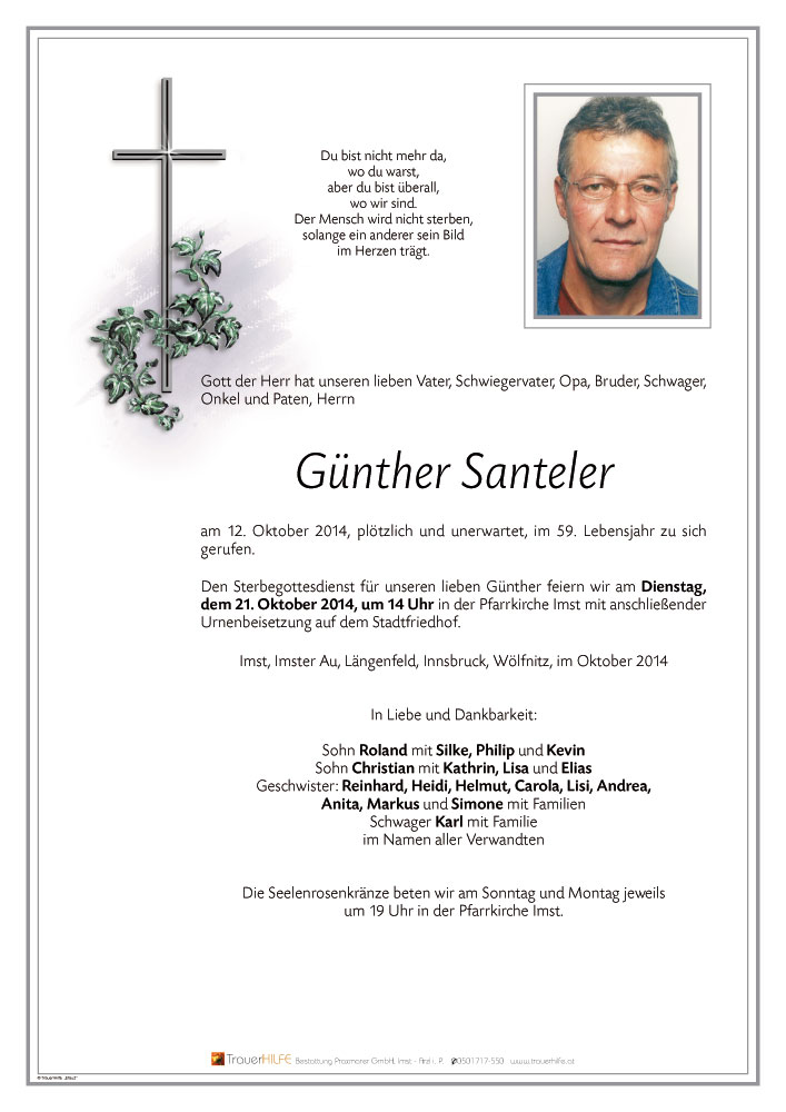 Bestattung wurde durchgeführt von: Daniel Klocker Bestattung Praxmarer GmbH Thomas Walch Str. 4 6460 - Imst Tel.: 05412 64250 zum Bestatter
