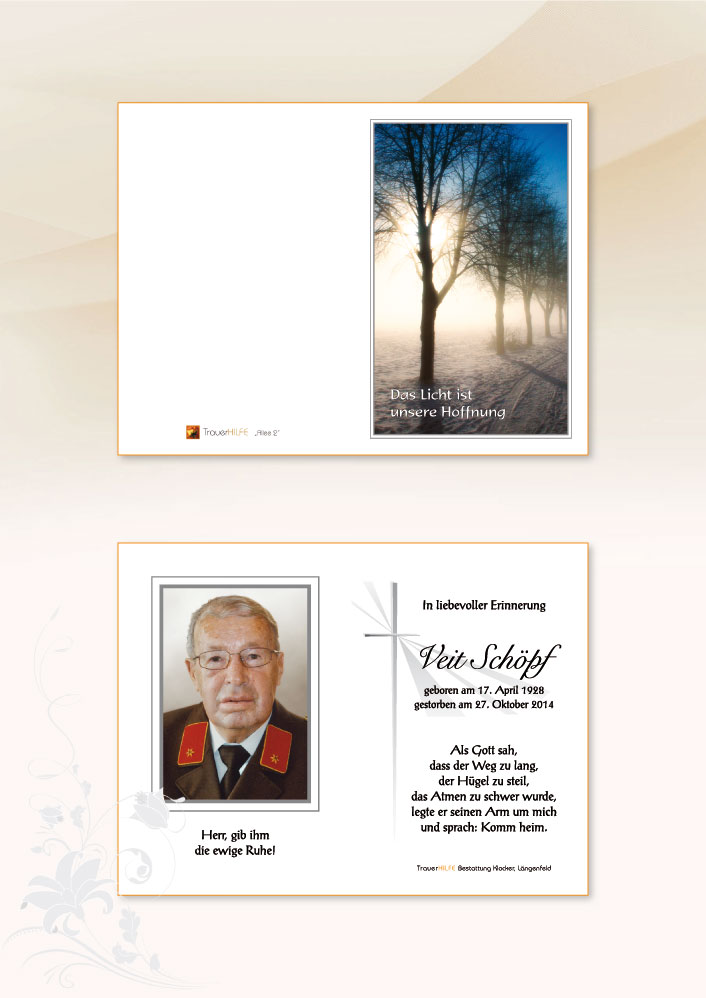 Bestattung wurde durchgeführt von: Daniel Klocker Bestattung Klocker GmbH Oberlängenfeld 41 6444 - Längenfeld Tel.: 05253 5561 zum Bestatter