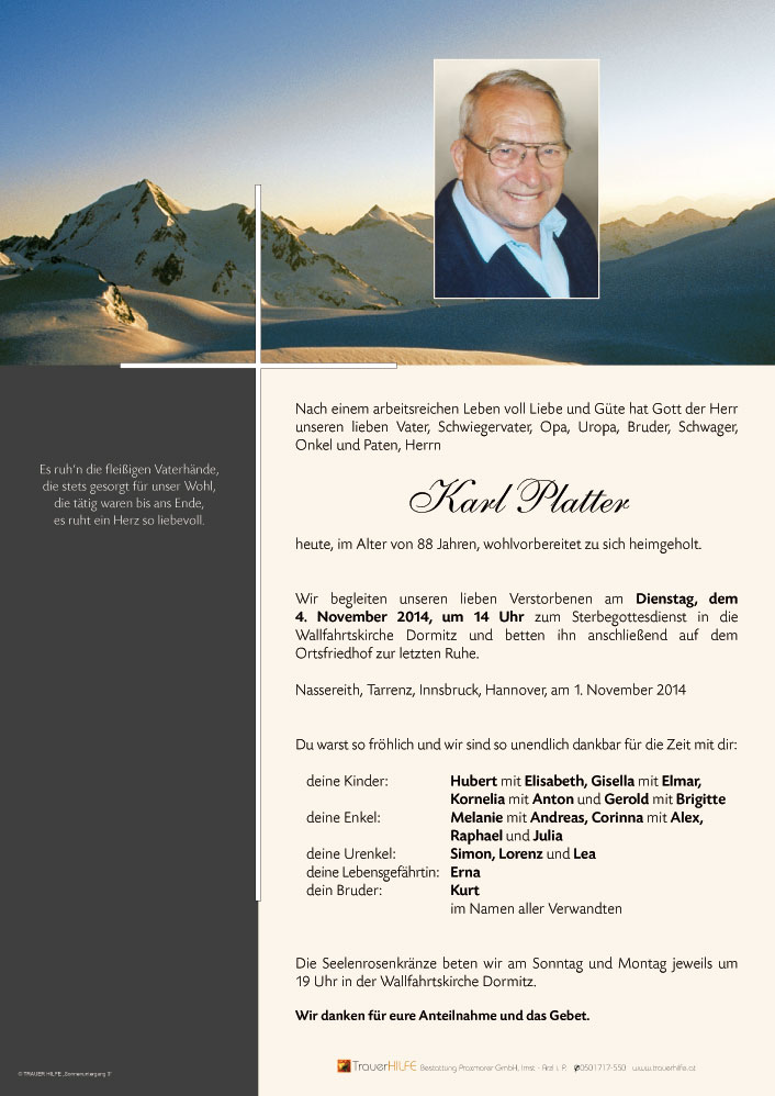 Aufrichtige Anteilnahme zum Tod eures geliebten Vaters.03.11.2014 13:38 - Zoller Christian