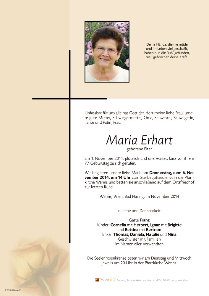 Bestattung wurde durchgeführt von: Daniel Klocker Bestattung Praxmarer GmbH Thomas Walch Str. 4 6460 - Imst Tel.: 05412 64250 zum Bestatter