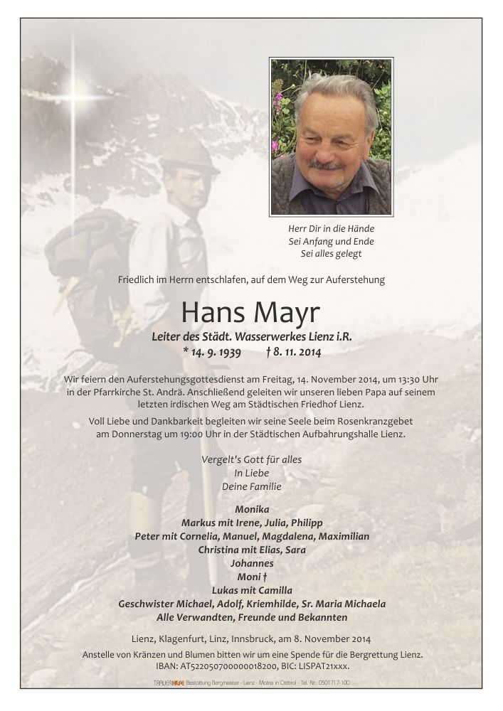 Liebe Trauerfamilie Mayr!