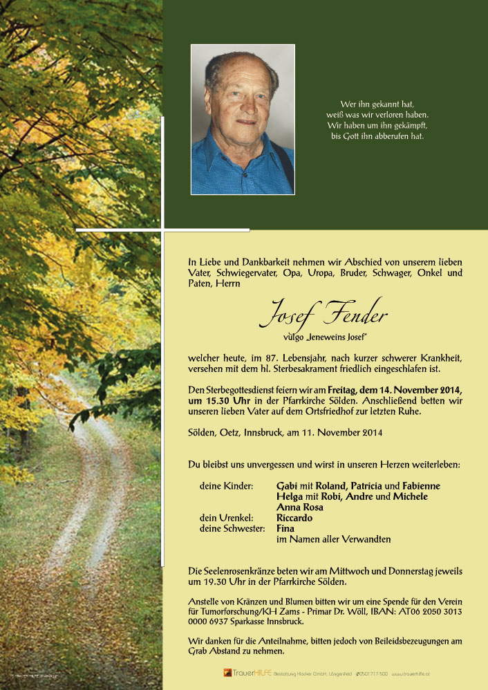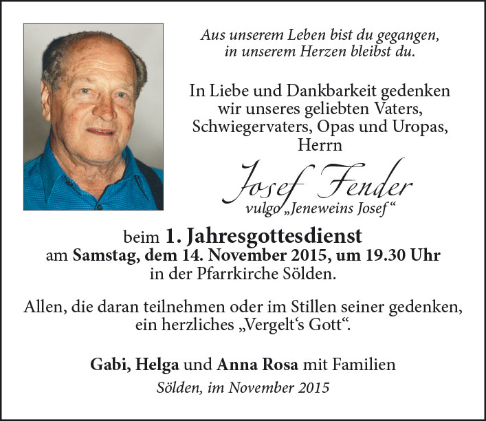 Wir wünschen euch in diesen schweren Stunden der Trauer und des Schmerzes viel Kraft und Zuversicht! Möge euer Papa in Frieden ruhen!13.11.2014 18:36 - Birgit Holzknecht