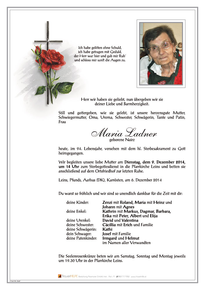 Friedhof Leins, † 06.12.2014 (93 Jahre)