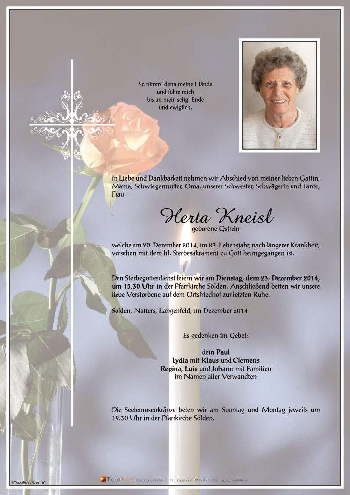 Neue Kerze für Herta Kneisl entzünden.