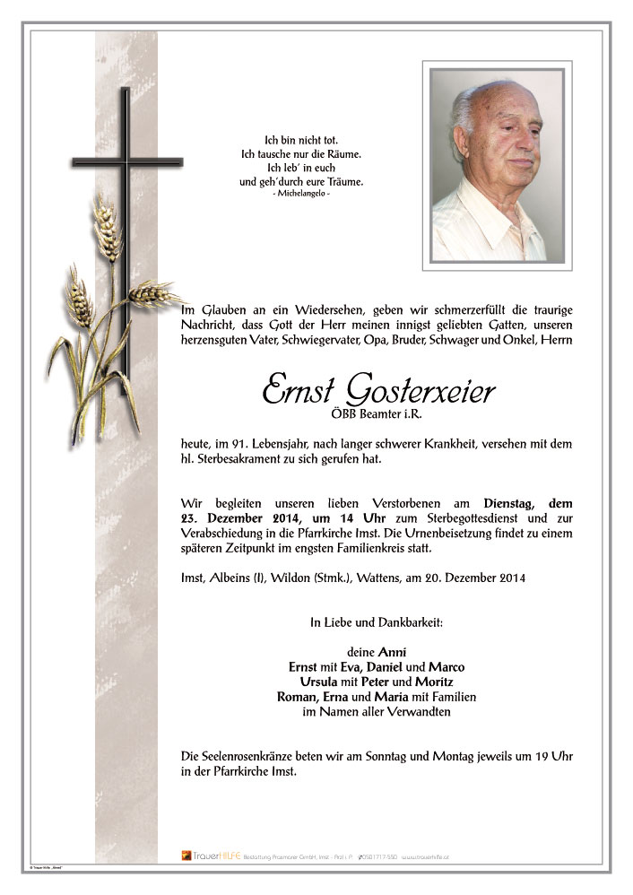 Liebe Frau Gosterxeier, lieber Ernst und Trauerfamilie.