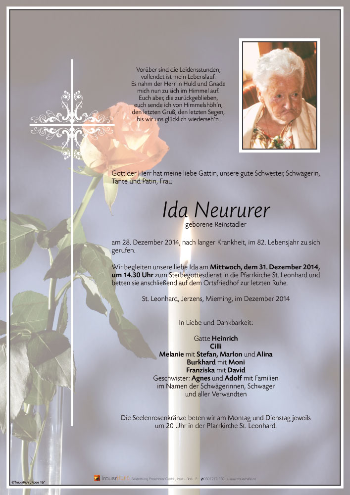 Bestattung wurde durchgeführt von: Daniel Klocker Bestattung Praxmarer GmbH Thomas Walch Str. 4 6460 - Imst Tel.: 05412 64250 zum Bestatter