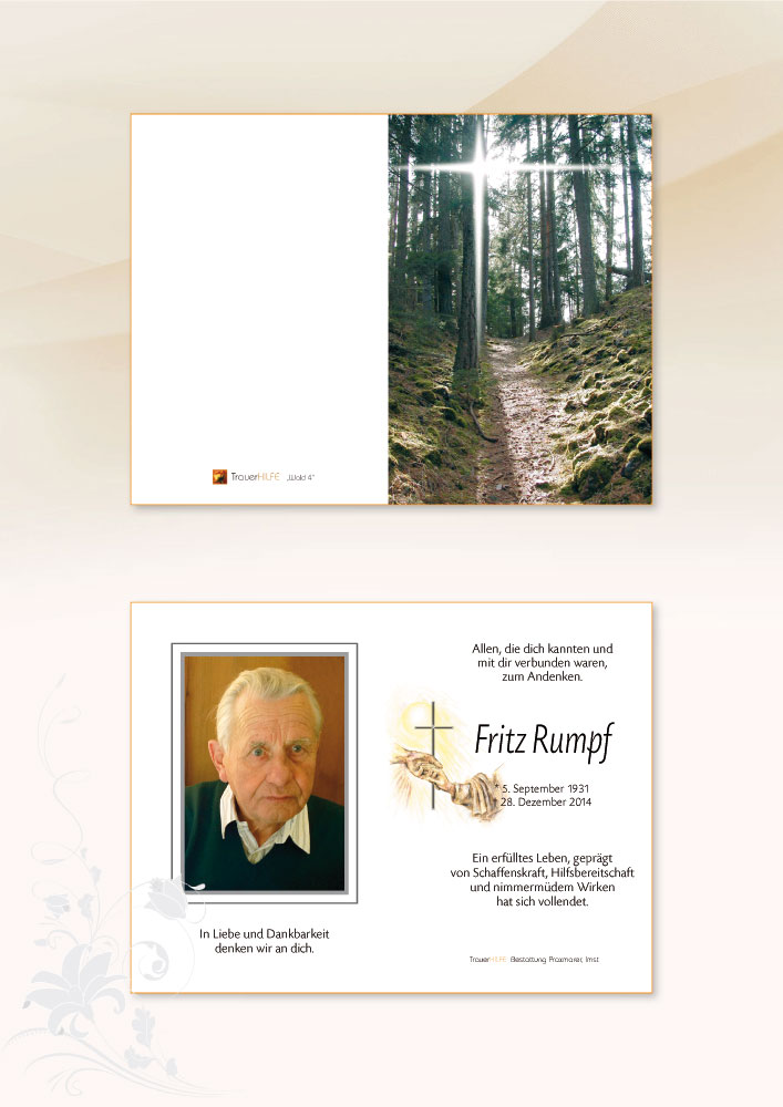 Liebe Gertrud unsere aufrichtige Anteilnahme am Heimgang Deines Vaters entbieten Hilde und Peter.