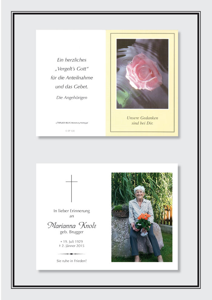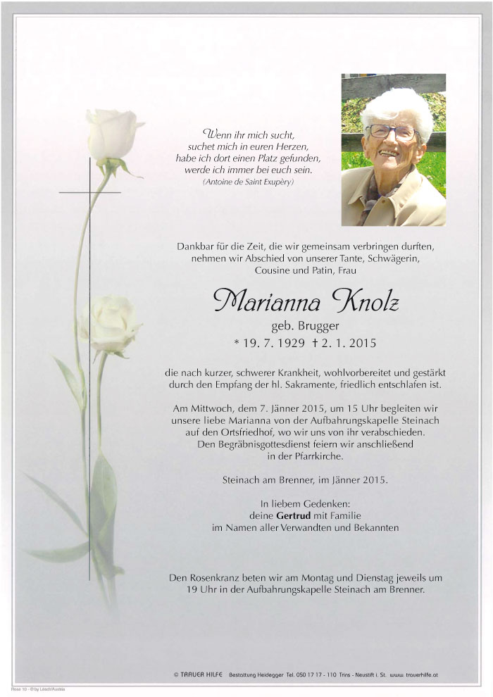 Bestattung wurde durchgeführt von: Karl Neurauter Karl Neurauter Bestattung Heidegger Brennerstraße 69 6150 - Steinach am Brenner Tel.: 05275 5211 zum Bestatter