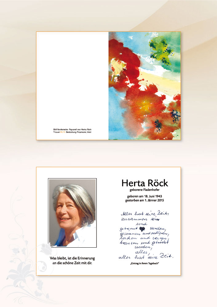 unser aufrichtiges Mitgefühl am so plötzlichen Tod deiner Frau Herta,