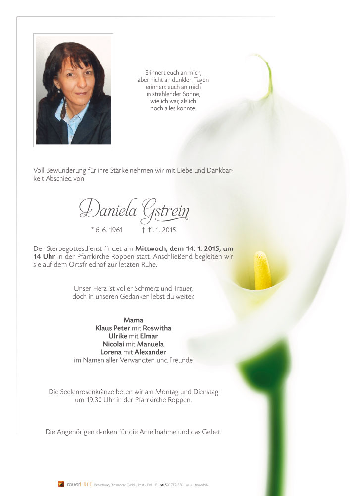 Aufrichtige Anteilnahme entbieten Liliane und Oskar mit Kindern13.01.2015 19:55 - Fam. Schöpf