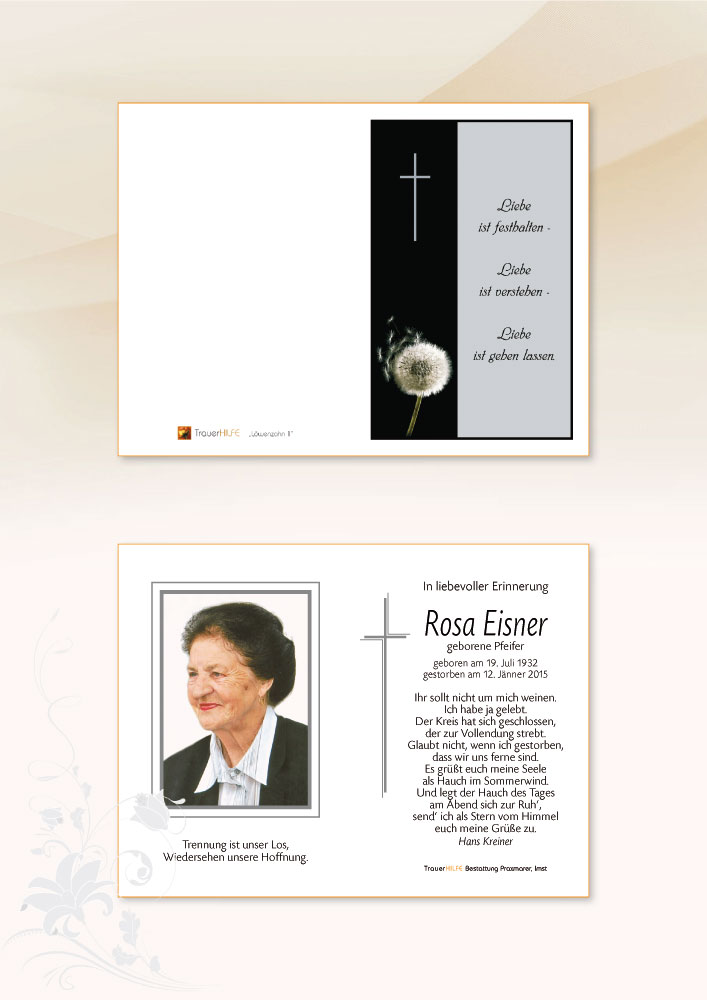 Aufrichtige Anteilnahme zum Tode deiner Mutter entbieten dir, lieber Gerhard, und der gesamten Trauerfamilie von Herzen