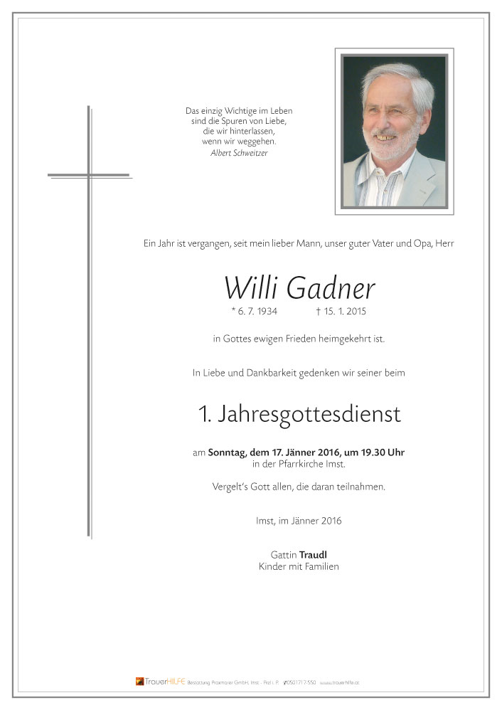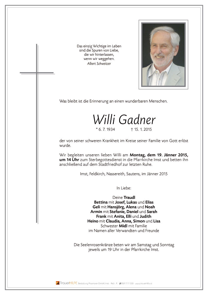 Liebe Traudl mit Kinder und Enkel. Ich denke gerne an gemeinsame Zeiten mit Willi zurück. Sei es ist der Pfarre oder beim Bundesheer, wo er mein Chef war. Ein feines Miteinander. Andreas